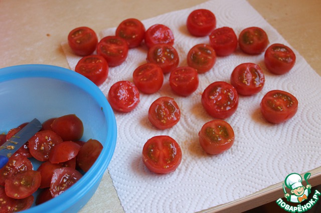 Берем 20 штук помидорок черри.