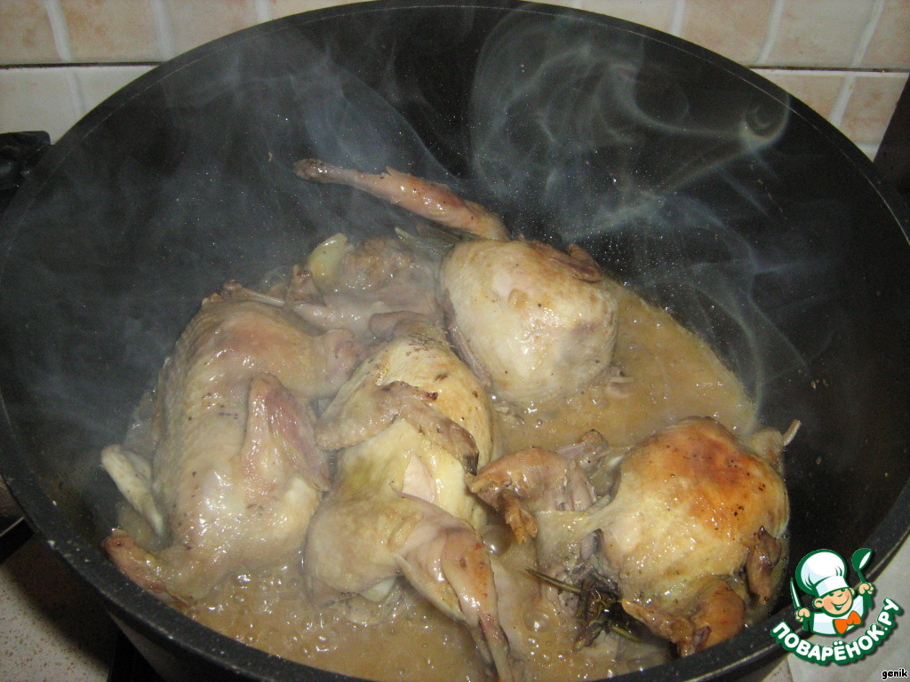 Перепела в винном соусе