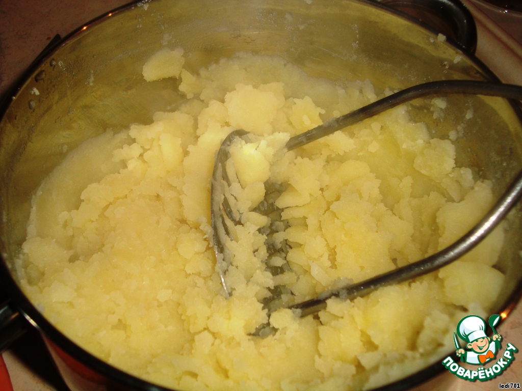 Картофель помыть, почистить, отварить, посолить и помять в пюре.