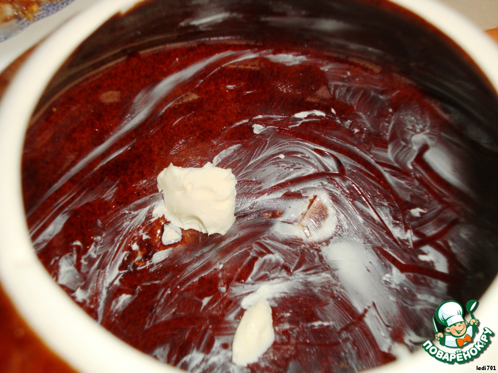 Через 20 мин. достать горшочек из духовки, разбить одно яйцо, накрыть крышкой и отправить обратно в духовку еще минут на 10-15.