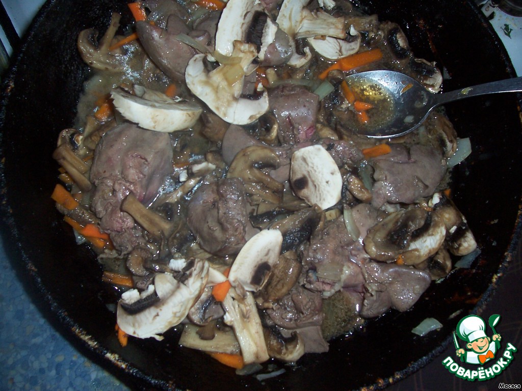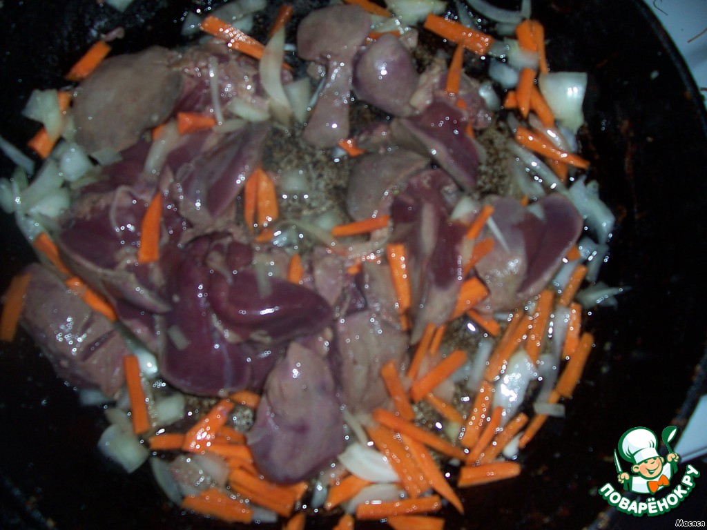 | Предлагаю еще один вариант приготовления куриной печени! Рецепт придумала сама, получилось очень ароматно, нежно и вкусно! |