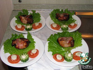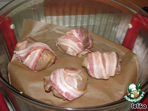Обернуть каждую птичку 2-мя полосками бекона, как патронташ!!