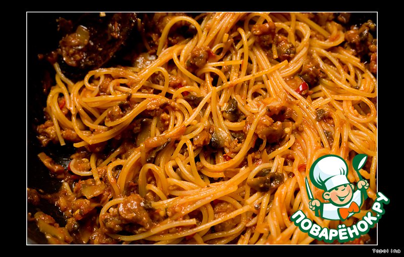 Спагетти с домашними колбасками и грибами (Spaghetti con salsiccia e funghi)