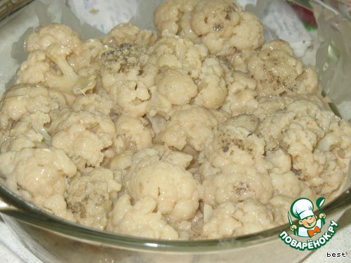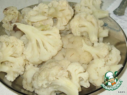 Капусту разобрать на соцветия и отварить до полуготовности (чтобы еще немного похрустывало).