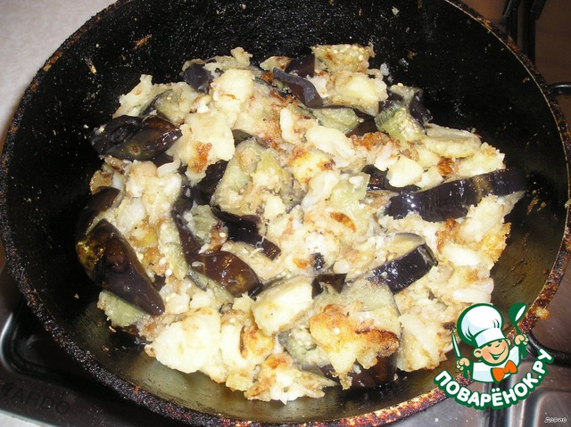 Баклажаны запечь, либо сварить. Я пользовалась микроволновкой. Те же предварительные проколы и немного воды. Мощность - 800, 7 минут.