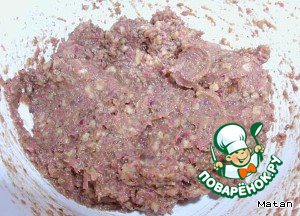 В миску высыпать орехи, лук, топленое масло, соль, перец и кашицу.