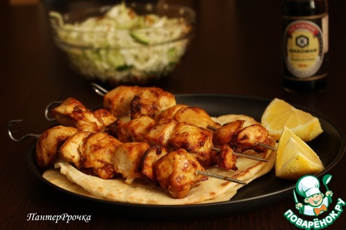 | Хочу представить Вашему вниманию простой в приготовлении, но интересный на вкус, аппетитный куриный шашлык! Специи придают ему пикантность и аромат. А как идеально оттеняют вкус шашлыка лепешки с тонкой цитрусовой ноткой! Задаюсь вопросом, почему я не готовила такие лепешки раньше. |