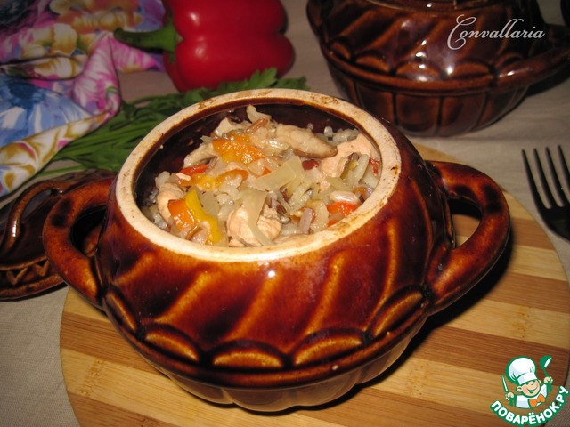 Горшочки с индейкой, рисом, капустой и грибами
