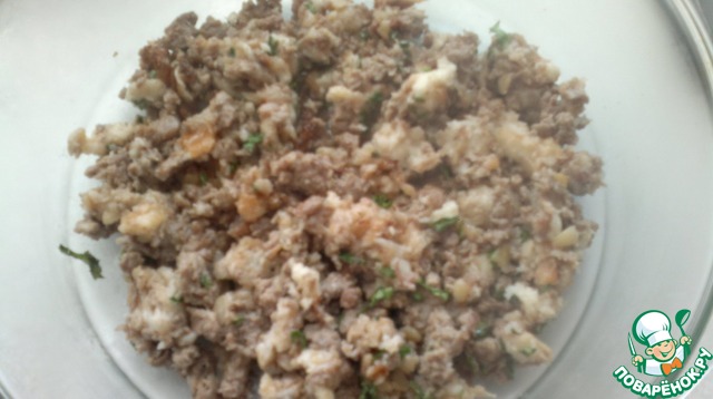 Затем добавим в фарш замоченные в молоке кусочки батона ( немного отжав их) и потушим еще 5 минут.