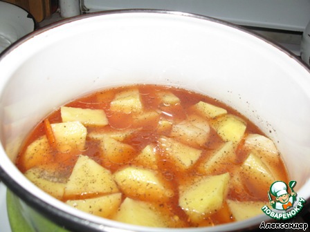 Поперчили, посолили. Имейте в виду, что бульон уже соленый и перченый.