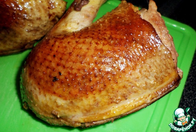 2. Теперь разрубим ее на 4 части и обжарим на сильно огне. Аутентично сделать это на арахисовом масле, но и обычный утиный жир с этим неплохо справился.