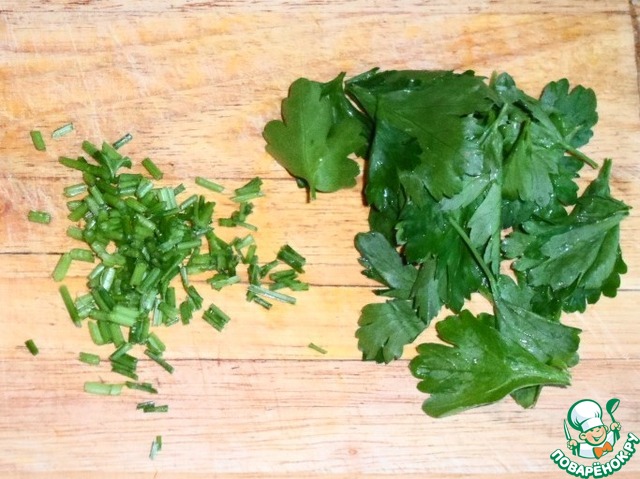 Отделите листы петрушки от стеблей и мелко нарежьте стебли.