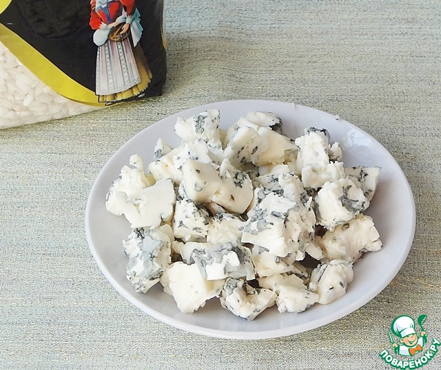 Раскрошите сыр. Не найдете горгонзолу - используйте другой голубой острый сыр, но его количество регулируйте по вкусу. Заметьте, блюдо дополнительно можно не солить.