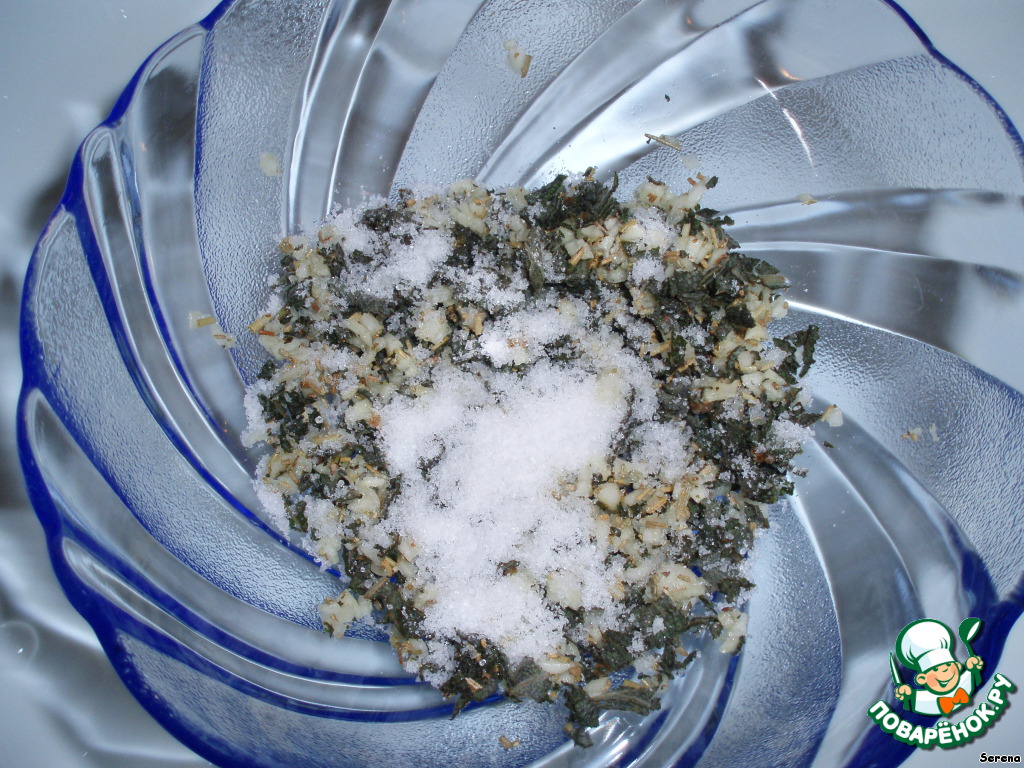 Шалфей и чеснок мелко порубить. Перемешать с солью (по вкусу).