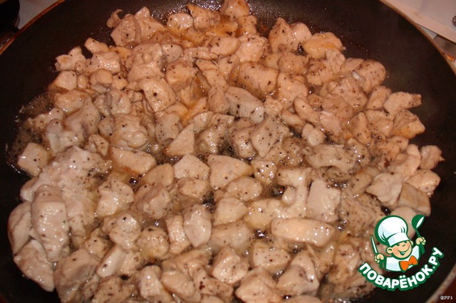 ... и куриное филе (по-моему, лучше было бы с фаршем, но когда на кухне нет мойки - ремонт! - лучше не включать мясорубку)