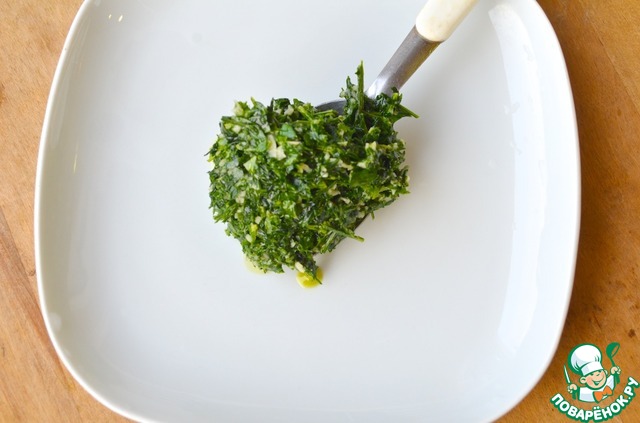 6. Для пикады: в ступке или блендере измельчить петрушку с чесноком.