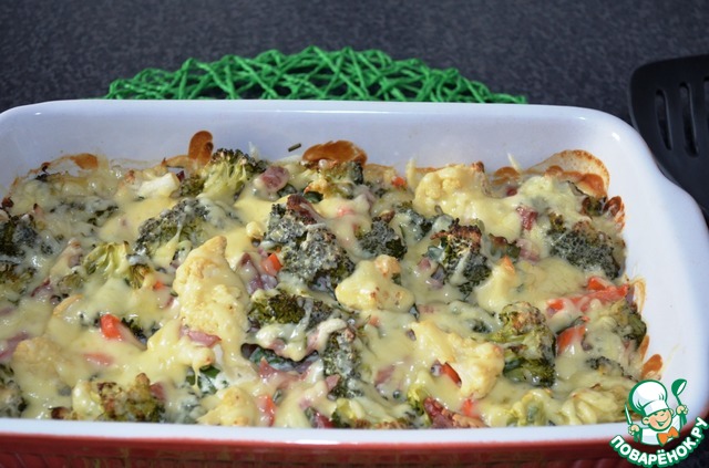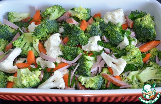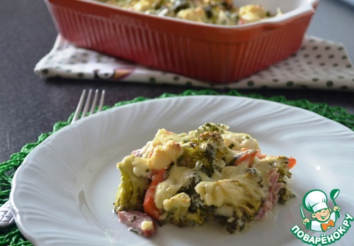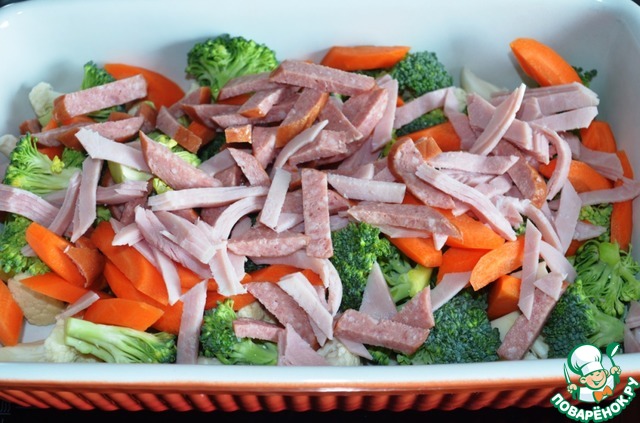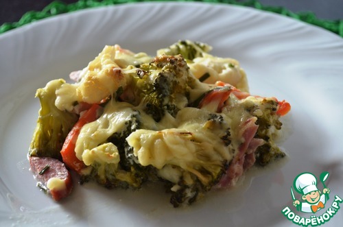 Овощная запеканка с колбасой