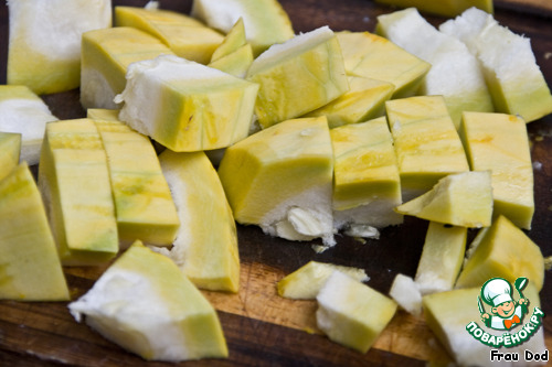 Тыкву очистить, удалить семечки, нарезать средними кусочками.