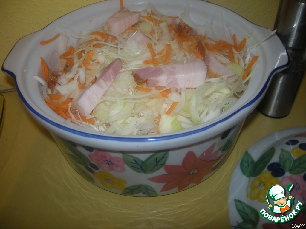 Капуста в горшочке, запеченная с беконом