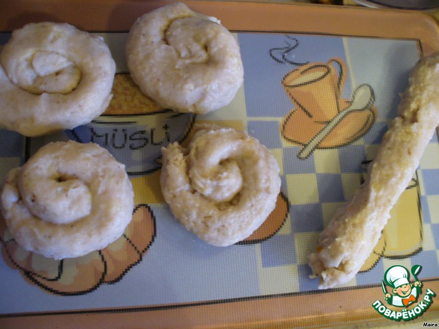 Из полученной массы сформировать небольшие «колбаски», затем свернуть в «улитки». Обвалять в панировочных сухарях, обжарить на растительном масле по 2 минуты с каждой стороны.