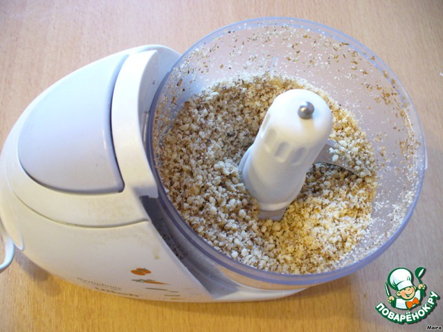 Грецкие орехи измельчить, сыр натереть на крупной терке.