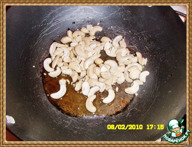 Часа 2 мариновались грудинки. В вок налить кунжутное масло, сильно нагреть, порционно выкладываем грудинки. Жарим на огне больше среднего (это ВАЖНО) до зарумянивания.