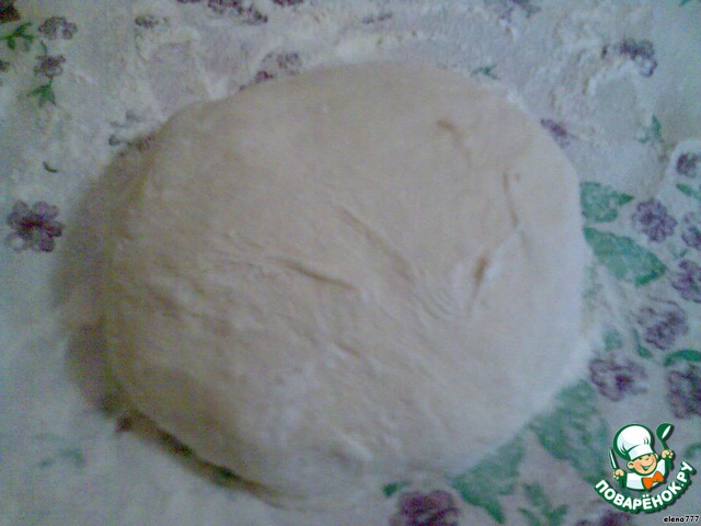Сухие дрожжи смешать с мукой, смешать тёплое молоко и воду, и в этой жидкости развести соль и сахар, влить в муку, вымесить, затем добавить растопленный маргарин и снова хорошо вымесить, поставить в тёплое место.