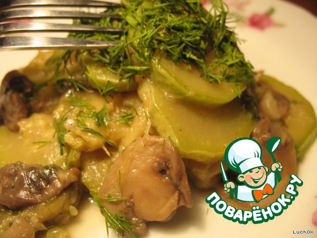 | Импровизация на тему тушеных кабачков. Просто тушить их было не интересно. Решила сделать их с изюминкой. Вкус получился отменный. И почему я раньше так не делала? Всем советую! |