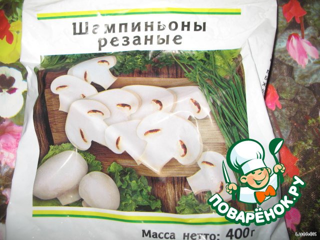 Затем взять шампиньоны. У меня были замороженные, но можно использовать и свежие.