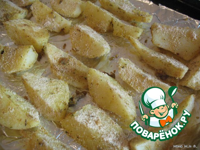 Почистить картофель и нарезать дольками (лучше брать картошки не круглые, а вытянутые - дольки будут красивее выглядеть).