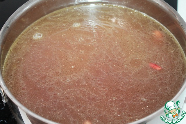 Заливаем фасоль бульоном. Традиционно это бульон из говядины. Его я и использую. Но вы можете использовать любой мясной или овощной бульон. Варим фасоль в бульоне примерно 1, 5 часа на медленном огне. Фасоль должна стать очень мягкой. При необходимости солим.