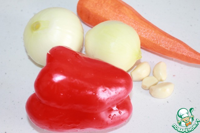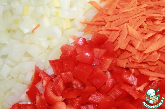 Морковь трем на терке. Перец и лук нарезаем кубиками.