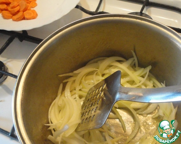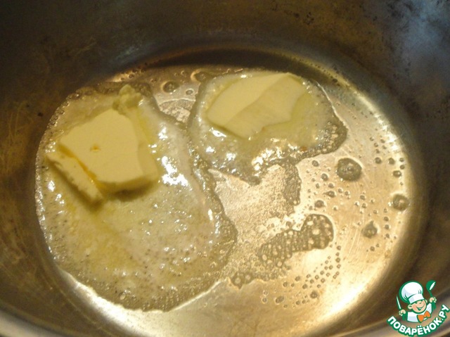 В кастрюле или сотейнике с толстым дном растапливаем сливочное масло. Оно придаст готовому блюду приятную молочную нотку.