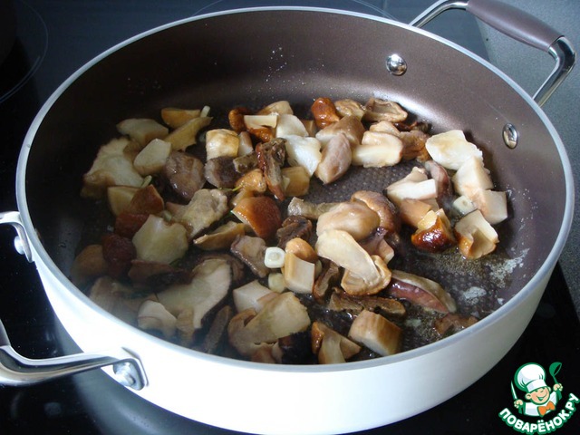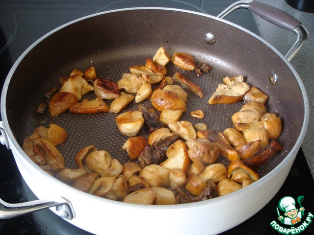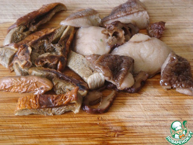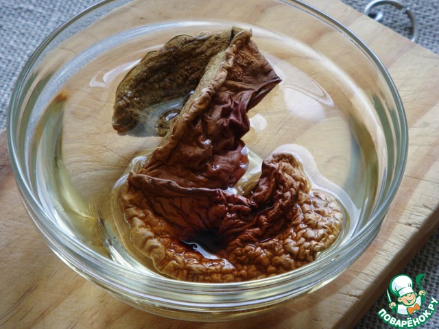 Сухие грибы предварительно замочить в холодной воде.