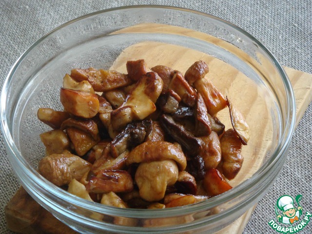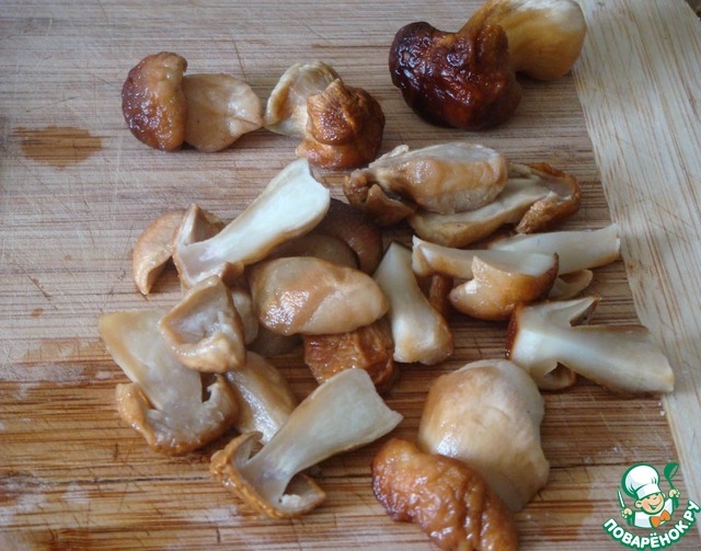 Извлеченные грибы порезать на не крупные кусочки.