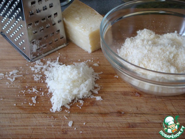 Пармезан натереть, либо взять уже натертый.