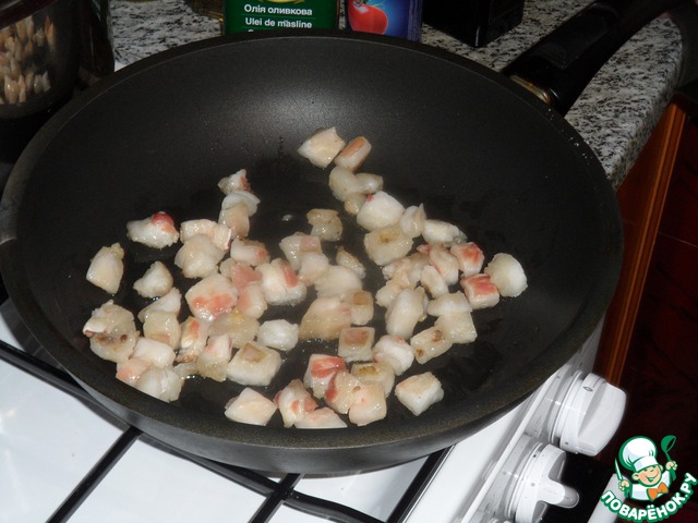 Порежьте сало небольшими кубиками примерно 1*1 см