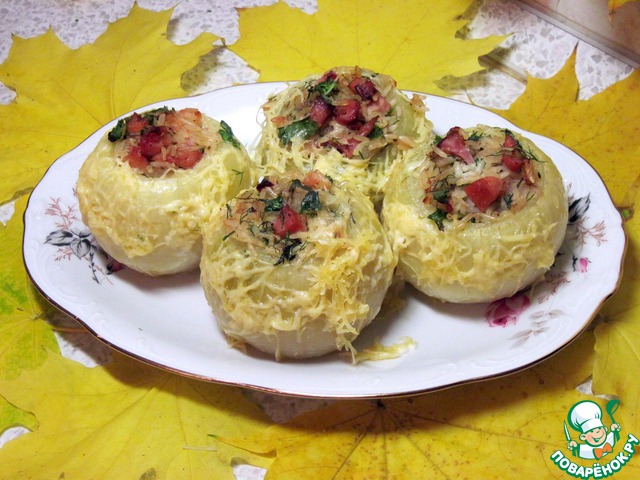 | В кулинарной книге каждой хозяйки есть рецепты фаршированных овощей. Мы фаршируем перец, капусту (традиционные голубцы), кабачки, картофель, помидоры."Можно ли использовать для этой цели лук? "-задала я себе вопрос. Оказалось во Французской, Итальянской, Английской кухнях существуют подобные рецепты. С одним из таких рецептов мы сегодня познакомимся. |