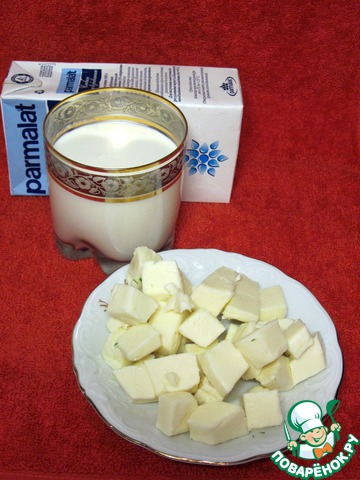 Приготовить продукты для соуса : сливки, сливочный сыр. Сливки взять средней жирности.