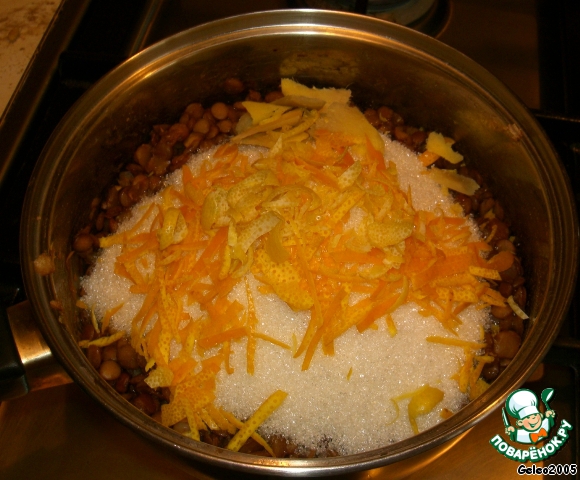 Пока горшок кипит-шкворчит, принесли мышки плоды, сняли с них цедру, нарезали корень имбиря, нашли стручок ванили. А как зерна сварились, засыпали их сахаром, добавили цедру, корень и сердце стручка ванили. Подождали еще немного, зелье при этом мешать не забывали.