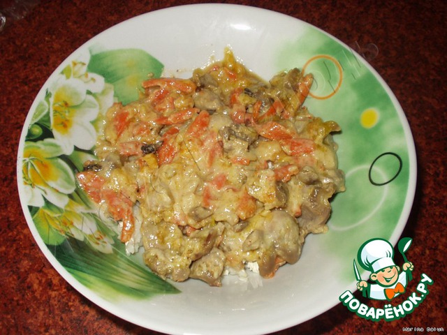 | Ароматно. Вкусно. Сытно. Так же можно приготовить печень и мясо. Были пупки, вот их и готовила. |