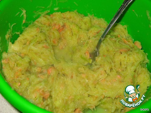 Из кабачков и яблок выжмите лишнюю влагу.