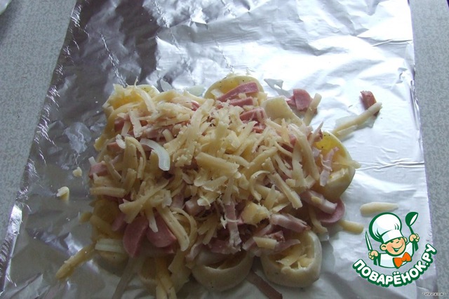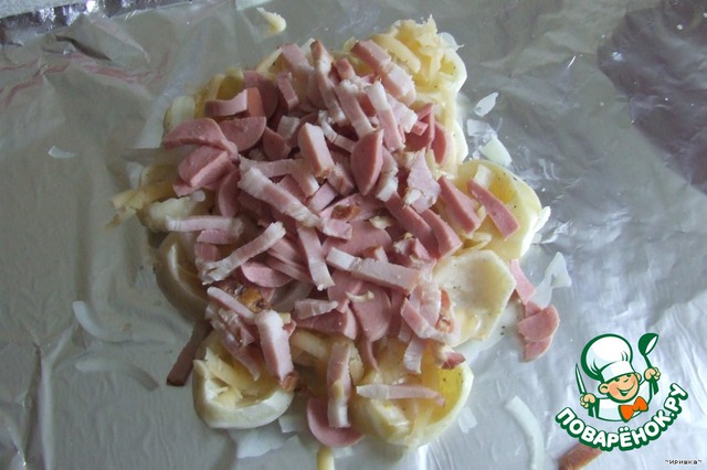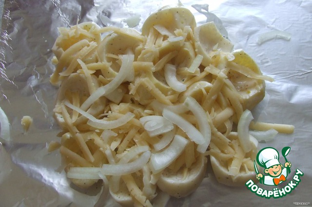 | Картошечка в фольге. Картофель, сыр, колбаса. |