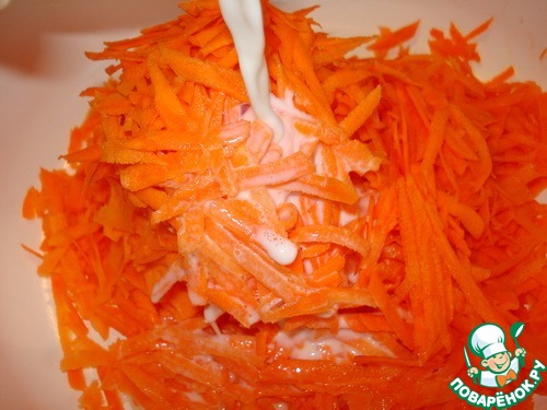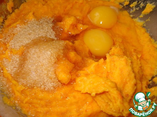 В готовую морковь всыпать манку, размешать. (манка сразу впитает остатки жидкости, и вам захочется добавить еще молока, но не надо, так и должно быть).