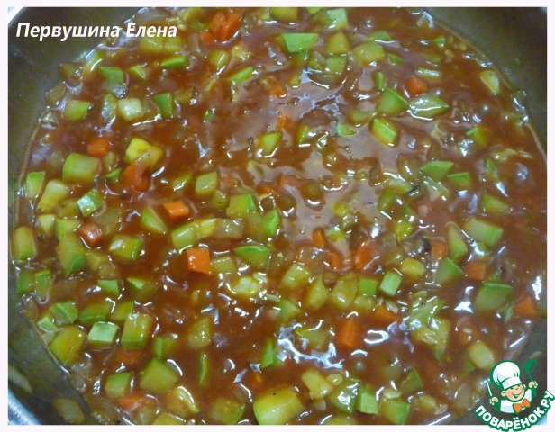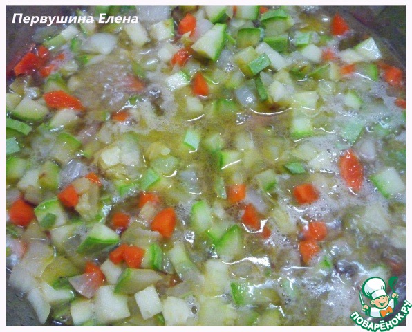 Обжариваем немного овощи и добавляя водички, тушим до полуготовности (чтобы еще хрустело).