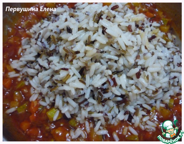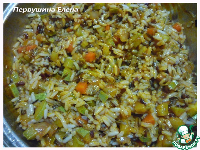 Добавляем наш рис к овощной смеси.