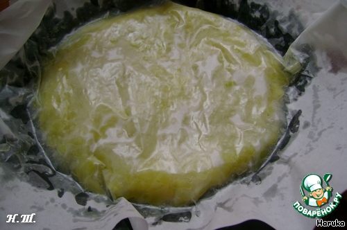 Готовую массу переложить в ёмкость и обязательно накрыть бумагой для выпечки.