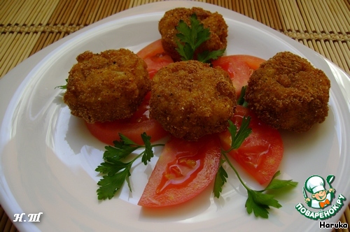 | Крокеты (от фр. croquer, кусать) — кулинарное блюдо цилиндрической или округлой формы из мясного фарша или овощей, обваленных в сухарях и обжаренных во фритюре. Крокеты изначально появились во Франции. В дальнейшем приобрели мировую популярность. Часто выступает в качестве гарнира. Крокеты из цуккини - испанское блюдо, очень-очень нежное, с хрустящей корочкой из сухарей. |