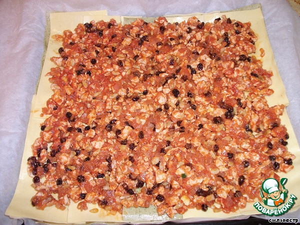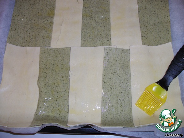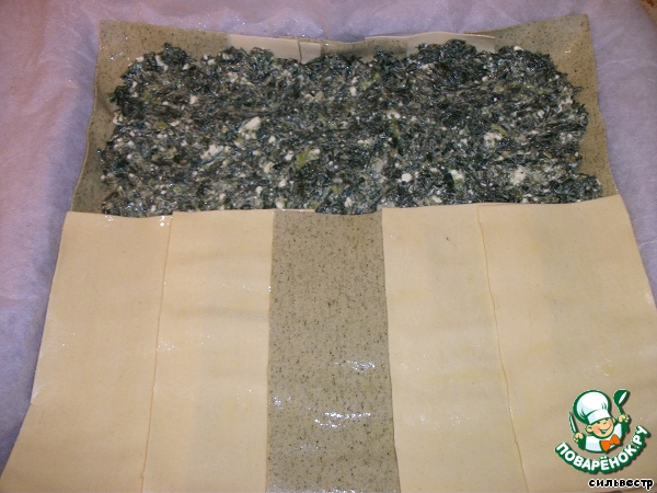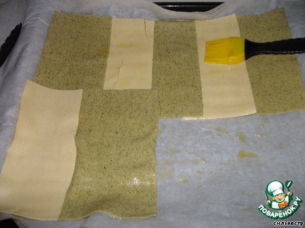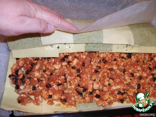 Накрываем следующим слоем лазаньи, с третьего пергамента.