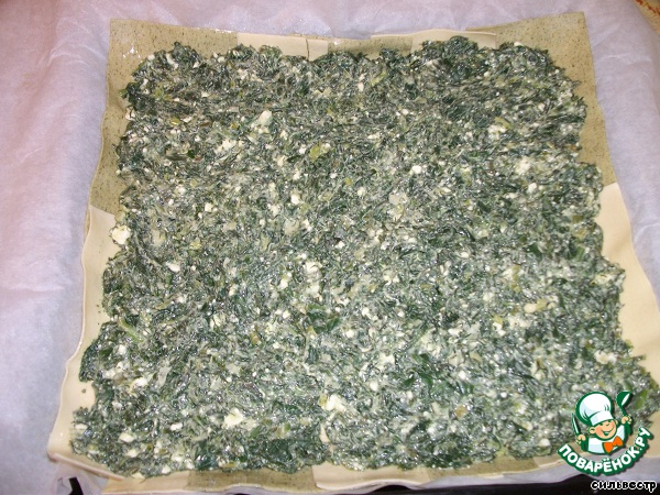 Добавляем в остывший шпинат, вымешиваем и на время забываем о нем. Это была первая начинка.